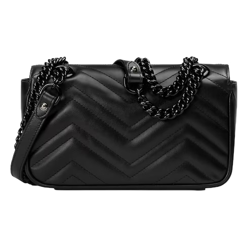 The GG Marmont small shoulder bag has a softly structured shape and an oversized flap closure with Double G hardware. The sliding chain strap can be worn multiple ways, changing between a shoulder and a top handle bag. Made in matelassé chevron leather, the accessory is introduced for Gucci Love Parade with monochrome hardware.
