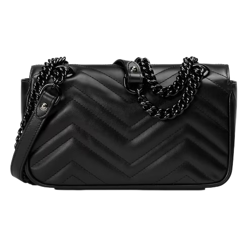 The GG Marmont small shoulder bag has a softly structured shape and an oversized flap closure with Double G hardware. The sliding chain strap can be worn multiple ways, changing between a shoulder and a top handle bag. Made in matelassé chevron leather, the accessory is introduced for Gucci Love Parade with monochrome hardware.