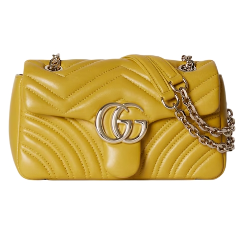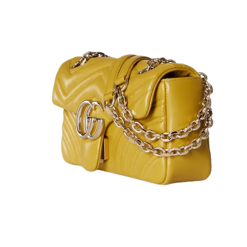 The GG Marmont, a signature collection of the House, features the Double G hardware, a faceted chain strap, and soft construction in an exceptionally supple leather.