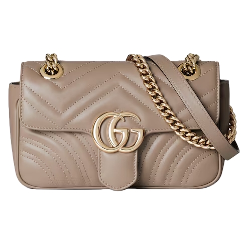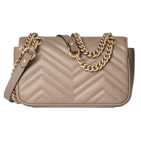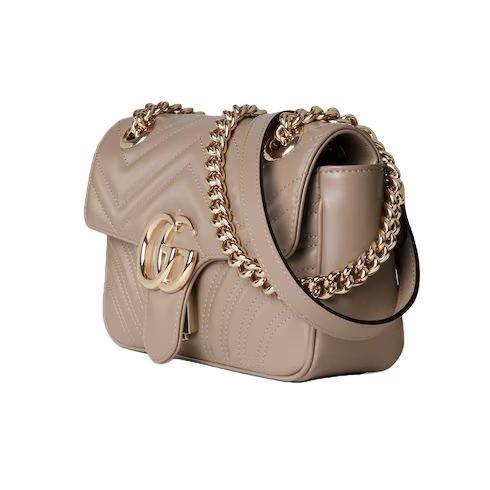 Embellished with the archival Double G logo, first introduced in the 1970s, the GG Marmont bag has established itself as a signature style of the House. The two capital letters of the style’s name refer to this emblem, recognizable by the partially overlapping hardware on the handbag’s front. Crafted from soft matelassé leather, the elegant handbag is evocative of Florentine craftsmanship.