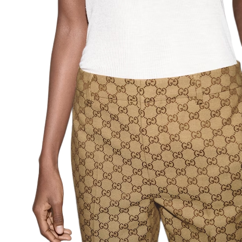 Emblematic codes of the House and refined patterns are reinterpreted in contemporary ways for the Pre-Fall collection. These straight-leg tailored pants are presented in camel and ebony Original GG canvas, making for a striking seasonal addition to your wardrobe.