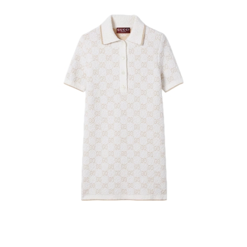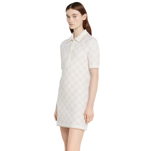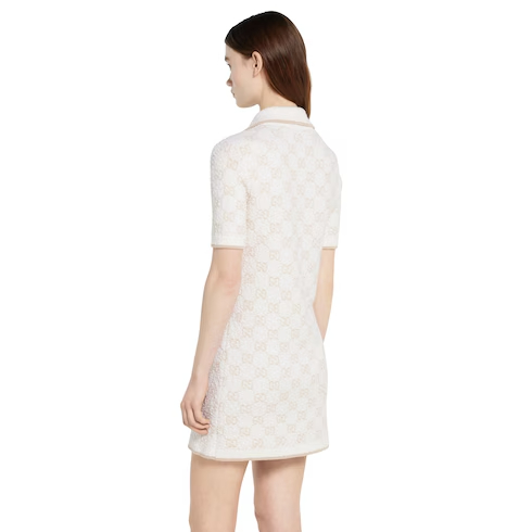 Taking inspiration from founder Guccio Gucci's monogram, the GG motif continues to be a firm favorite of the House. Here it defines this dress with a polo collar in a unique GG cashmere wool jacquard.