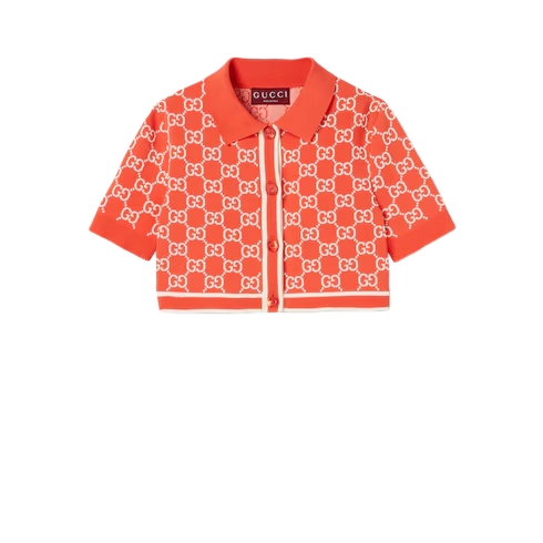 In the Cruise 2026 collection, women's ready-to-wear pieces transition into a new season with bright colors which take center stage across GG motif knitwear. Crafted from GG fine cotton jacquard, this cropped cardigan is completed with a front button closure.