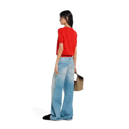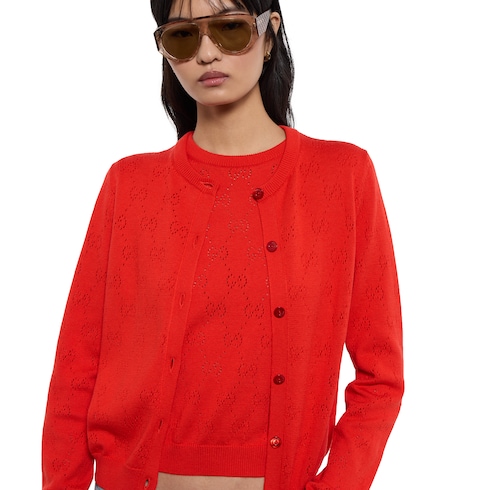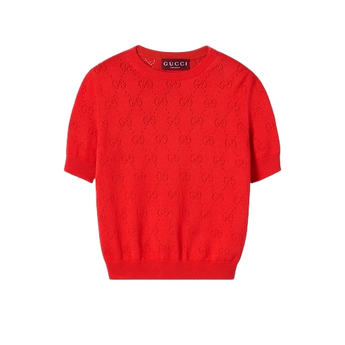 In the Cruise 2026 collection, women's ready-to-wear pieces transition into a new season with bright colors which take center stage across GG motif knitwear. This top is crafted from GG pointelle cotton silk.