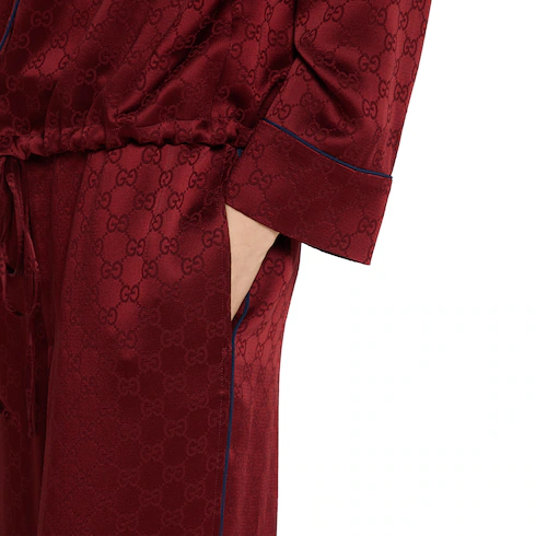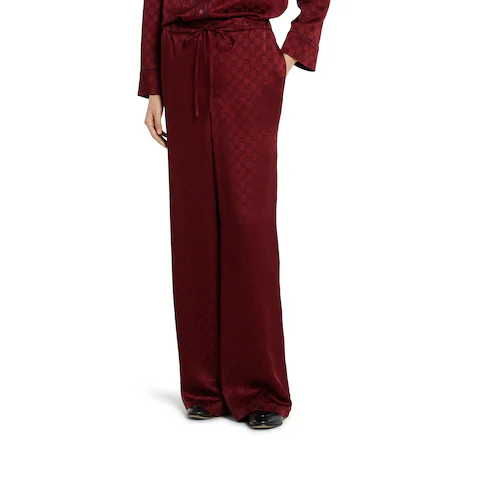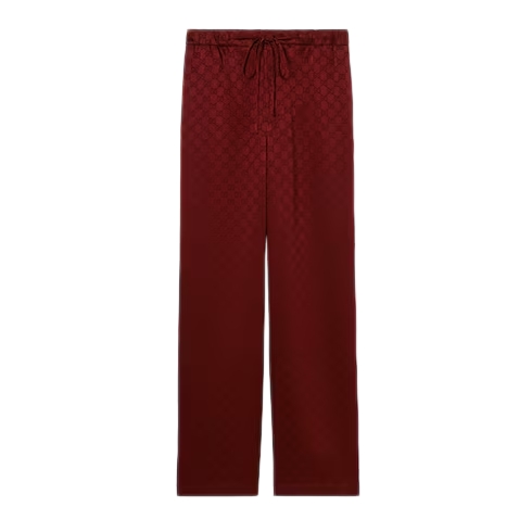 From light to deep shades, elegant pieces crafted from refined materials highlight sensual silhouettes, elevating the Pre-fall 2025 collection. This pair of casual pants are made from a delicate GG satin.