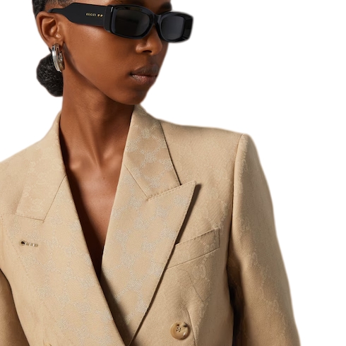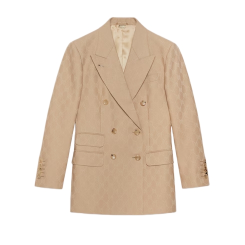 Classics reinterpreted with a contemporary attitude help shape the concept behind Gucci's broken suits. In a portrayal of different personalities, subtle tones and elevated garments define the House's vision for the contemporary wardrobe. Part of the selection, this jacquard jacket is defined by the House's emblematic monogram.