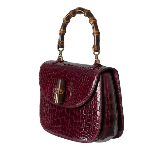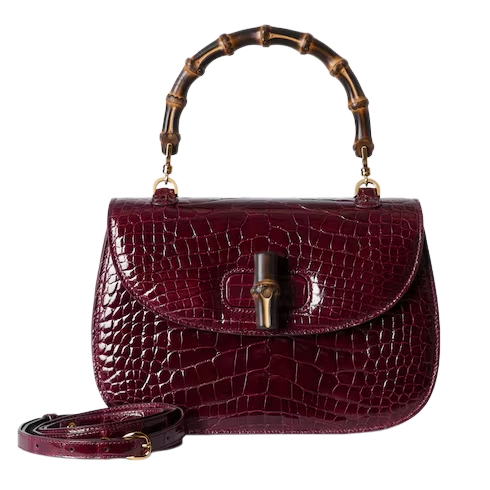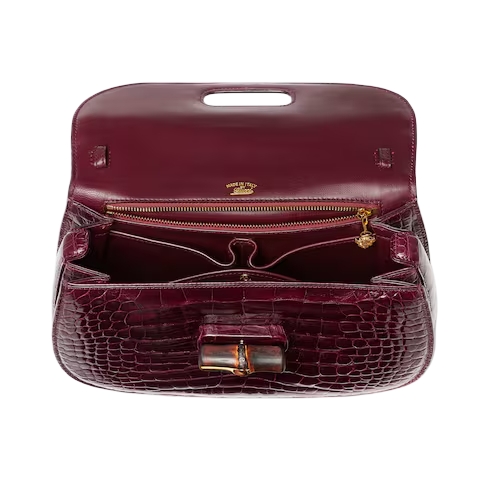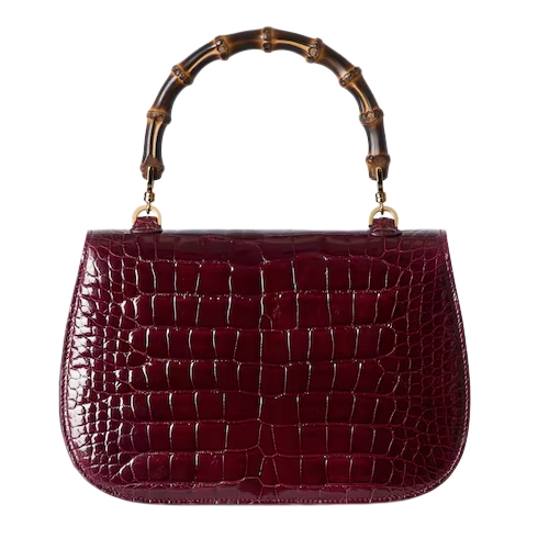 Introducing Spring Summer 2026. This Gucci Bamboo 1947 is featured in the "Ereditiera" look of La Famiglia. Crafted from precious leather, it has a unique tactility and appearance, achieved through a meticulous hand-polishing process which brings out the texture. The new construction features slim gussets and an innovative closure mechanism which clicks open and close in two positions.