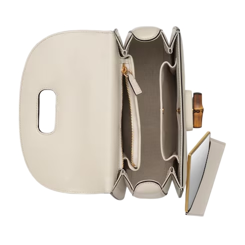 With its unique features such as the hand-curved bamboo handle, closure and a mirror in its own leather holder, Gucci Bamboo 1947 embodies the House’s signature style and artisanal excellence.