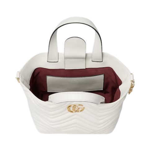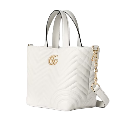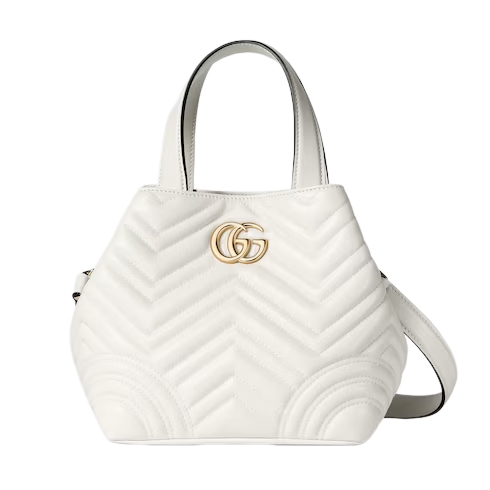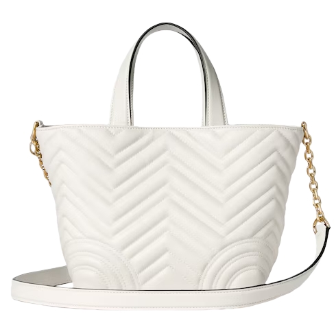 Gucci Betty adds a touch of spontaneity to refined design, which can change from a structured tote to soft-shaped bucket. The style is completed with top handles and a chain shoulder strap, offering versatile styling options.
