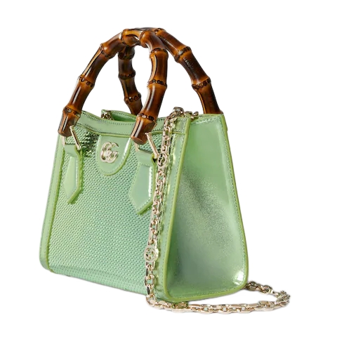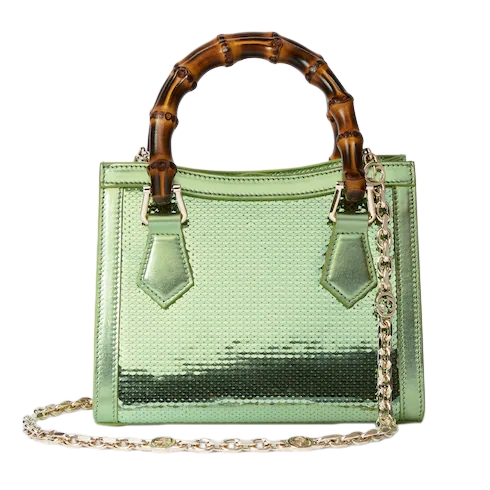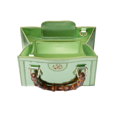 Gucci Diana, one of the House's signature collections, is introduced in embroidered silk satin, complete with its bamboo handle. The tote bag style can also be worn crossbody or over the shoulder.