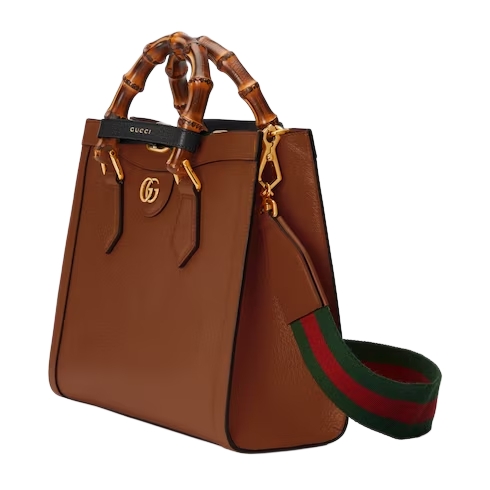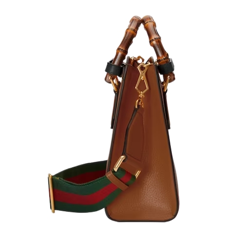 The concept of reinvention continues to shape the House's designs. An evolution of a bamboo handle tote first introduced in 1991, the Gucci Diana represents the notion of style in constant evolution. The design plays with traditional details and renews them new meaning. Playing with this idea, the functional bands used to keep bamboo handles in shape are reimagined as playful leather belts. Here, the tote is introduced in cuir leather.
