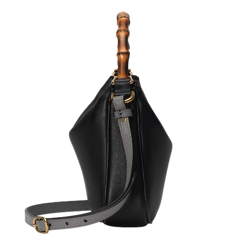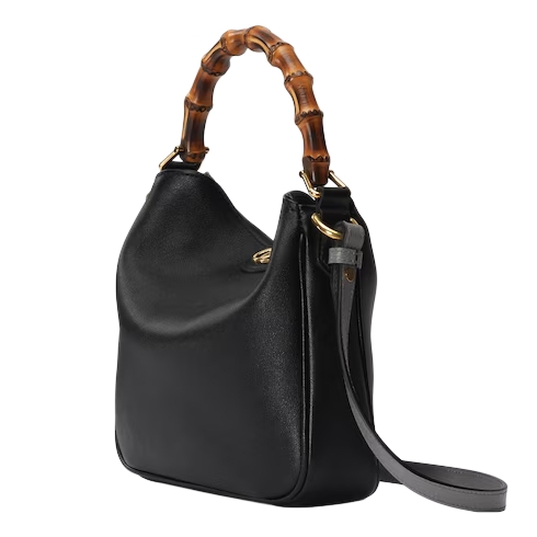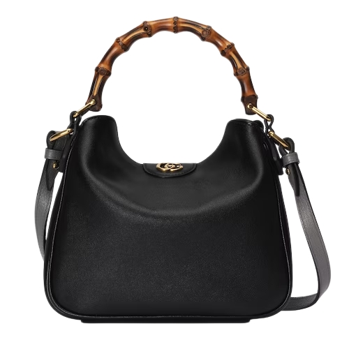 Combining recognizable elements of the House, the Gucci Diana is defined by its bamboo handles and Double G hardware. Crafted from black leather, the accessory is further accentuated by a contrasting grey leather shoulder strap.