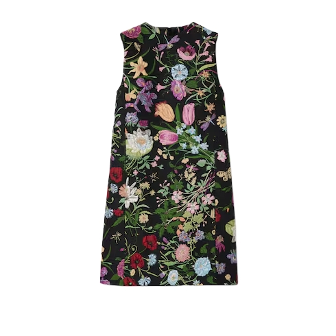 Introducing Spring Summer 2026. This style is inspired by the "La Contessa" look of La Famiglia. The collection reinterprets the House’s codes through singular personalities and distinctive aesthetic attitudes. This dress is presented in Gucci Flora silk brocade.