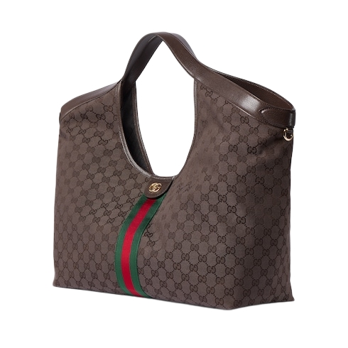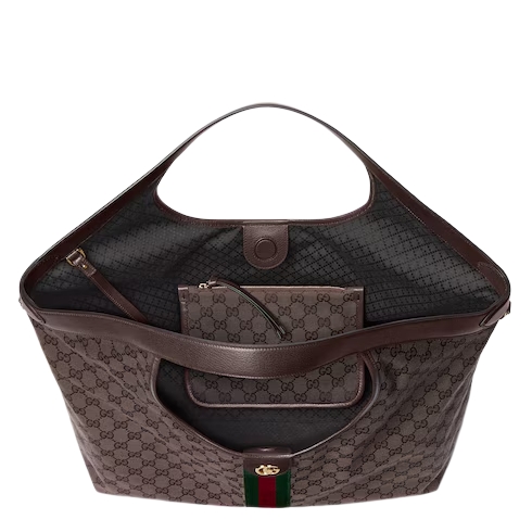 Introducing Spring Summer 2026. Further elevated with leather trim top handles, Gucci Giglio is a tribute to the House’s Italian roots, and the spirit of continuity and reinvention. Crafted from GG canvas in a new shade, the style reveals a new lining with Diamante motif taken from the archive.