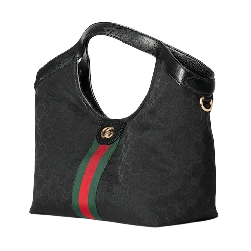Introducing Spring Summer 2026. Further elevated with leather trim top handles, Gucci Giglio is a tribute to the House’s Italian roots, and the spirit of continuity and reinvention. Crafted from lightweight yet structured GG canvas, the style reveals a new lining with Diamante motif taken from the archive.