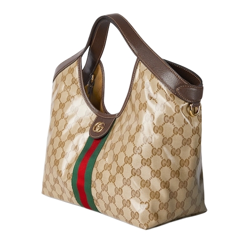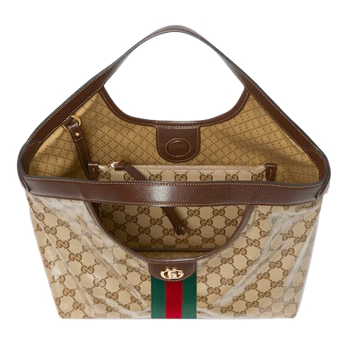 Introducing Spring Summer 2026. Further elevated with leather trim top handles, Gucci Giglio is a tribute to the House’s Italian roots, and the spirit of continuity and reinvention. Crafted from new coated GG fabric with a soft texture and shiny appearance, the style reveals a new lining with Diamante motif taken from the archive.
