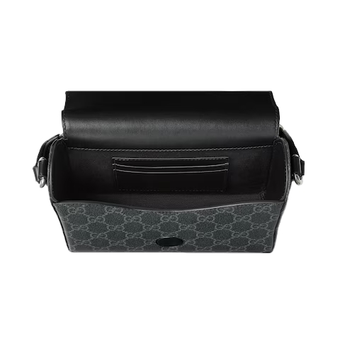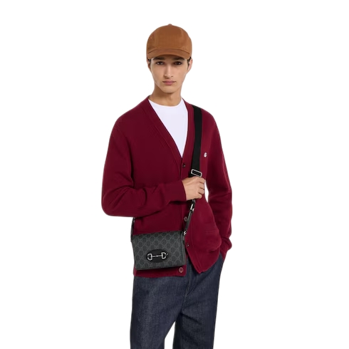 The Gucci Horsebit 1955 collection introduces a mini bag with a boxy silhouette. Ideal for carrying essentials, it is embellished with black leather trim and silver-toned hardware.