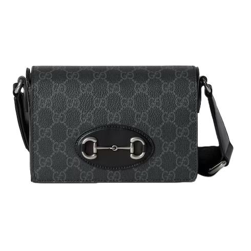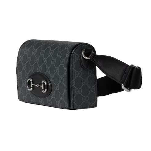 The Gucci Horsebit 1955 collection introduces a mini bag with a boxy silhouette. Ideal for carrying essentials, it is embellished with black leather trim and silver-toned hardware.