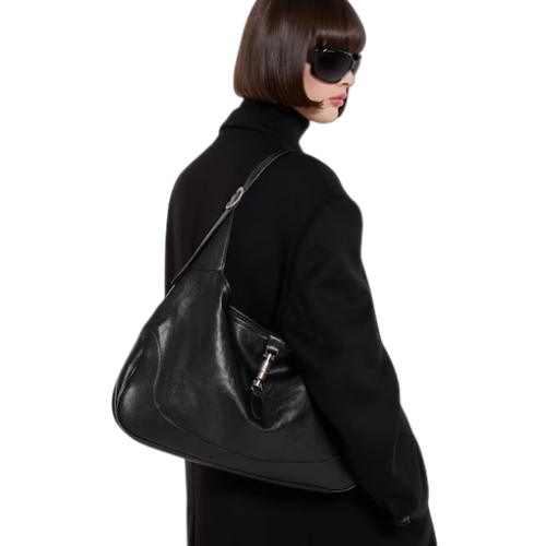 Introducing Spring Summer 2026. This new Gucci Jackie 1961 design is centered around the emblematic piston closure. Crafted from soft leather, the style can be carried over the shoulder, or crossbody with the detachable. strap. It is featured in the "Ragazzo della porta accanto" and "Ragazza" looks of La Famiglia.