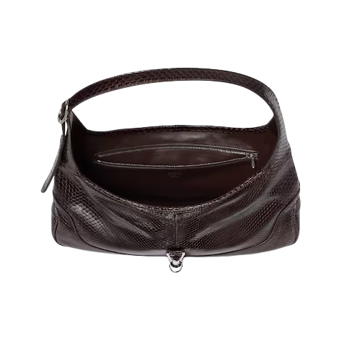 Dark brown python leather, finished by hand with abrasive tools for a lived-in appearance