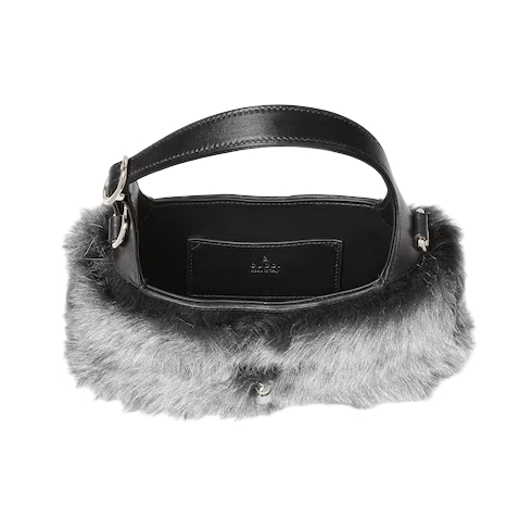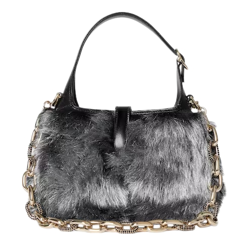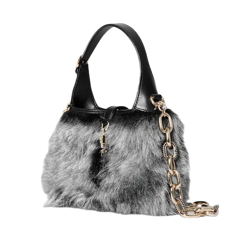 The Gucci Jackie 1961 with its signature piston closure and emblematic shape tells a story that spans eras. Crafted in sumptuous long-haired shearling, this style is complete with an intricate chain shoulder strap in light gold-toned finish.