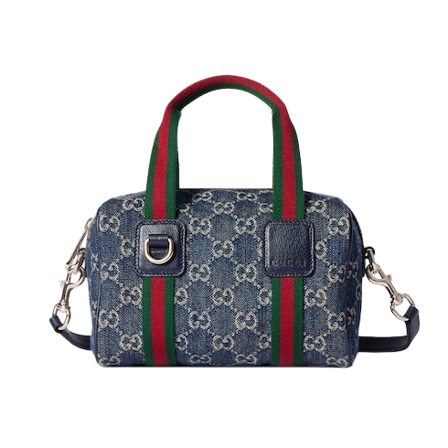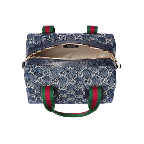 Inspired by the Gucci duffle silhouette, the Mini GG handbag continues to revisit the House’s codes and celebrated travel legacy with different materials. This version is crafted in denim for an added touch of softness, which speaks to its effortless elegance while highlighting the signature GG motif.