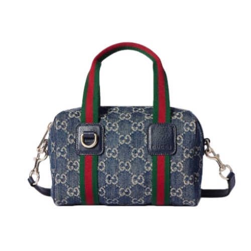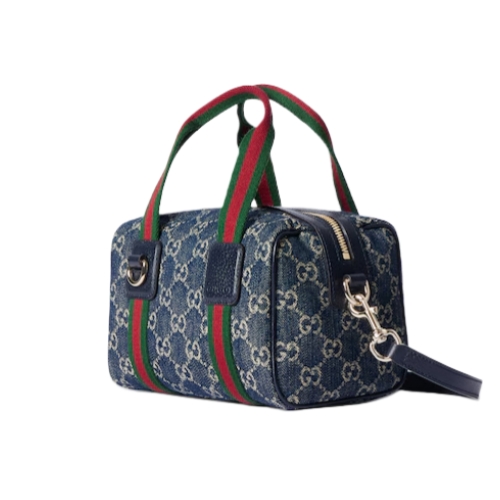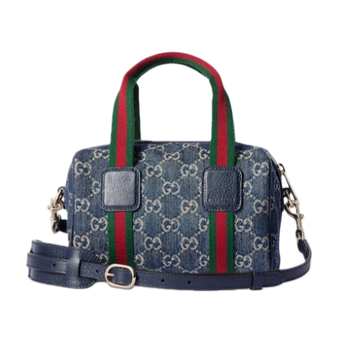 Inspired by the Gucci duffle silhouette, the Mini GG handbag continues to revisit the House’s codes and celebrated travel legacy with different materials. This version is crafted in denim for an added touch of softness, which speaks to its effortless elegance while highlighting the signature GG motif.
