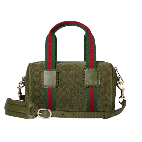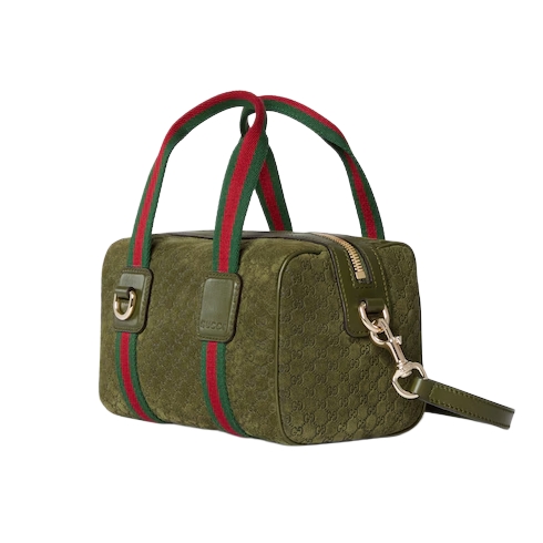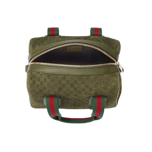 Inspired by the Gucci duffle silhouette, the Mini GG handbag continues to revisit the House’s codes and celebrated travel legacy with different materials. This version is crafted in suede for an added touch of sophistication, which speaks to its effortless elegance while highlighting the signature GG motif.