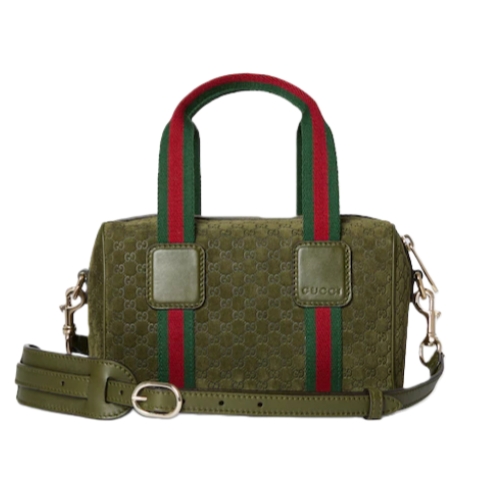 Inspired by the Gucci duffle silhouette, the Mini GG handbag continues to revisit the House’s codes and celebrated travel legacy with different materials. This version is crafted in suede for an added touch of sophistication, which speaks to its effortless elegance while highlighting the signature GG motif.