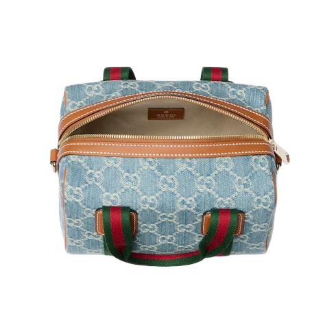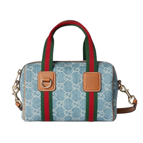 Inspired by the signature Gucci duffle silhouette, the House presents the Mini GG handbag. Crafted in denim and featuring Web stripe handles and a detachable strap, the style revisits the House’s codes and celebrated travel legacy.