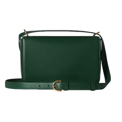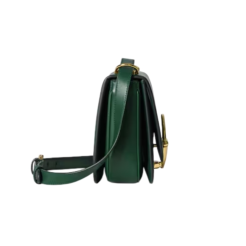 In the Fall Winter 2025 collection, the Gucci Siena small shoulder bag carries forward the evolution of the Horsebit, a signature code that is inherently Gucci. Crafted from fine smooth leather, its structured silhouette is defined by the half Horsebit clasp, a distinctive detail first introduced in the 1970s. Finished with gold-toned hardware and a lined interior featuring three gussets and a zip pocket.