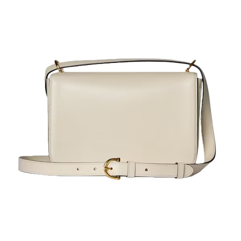 In the Fall Winter 2025 collection, the Gucci Siena small shoulder bag carries forward the evolution of the Horsebit, a signature code that is inherently Gucci. Crafted from fine smooth leather, its structured silhouette is defined by the half Horsebit clasp, a distinctive detail first introduced in the 1970s. Finished with gold-toned hardware and a lined interior featuring three gussets and a zip pocket.