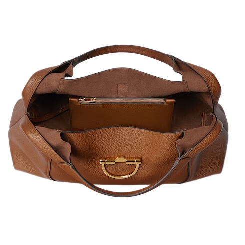 The new Gucci Softbit shoulder bag reimagines the House’s signature hardware as an oversized half Horsebit. It is both aesthetic and functional as the magnetic closure of the relaxed silhouette, crafted from supple, grainy leather with a rich texture.