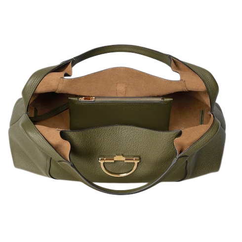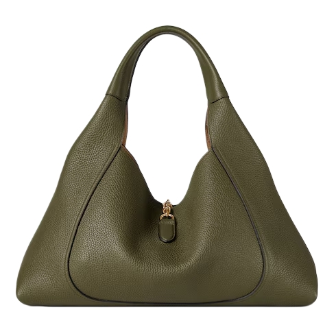 The new Gucci Softbit shoulder bag reimagines the House’s signature hardware as an oversized half Horsebit. It is both aesthetic and functional as the magnetic closure of the relaxed silhouette, crafted from supple, grainy leather with a rich texture.