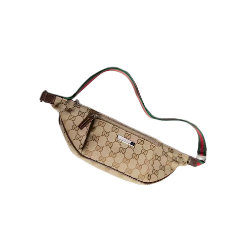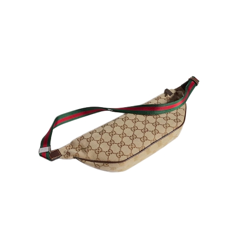 This style is part of the Gucci Primavera collection. The Gucci Tag design moves with the rhythm of the city and beyond. Crafted from GG canvas, this small belt bag reveals an adjustable green and red Web strap that allows it to be worn in multiple ways. A 'Gucci Made in Italy' metal tag completes the piece.