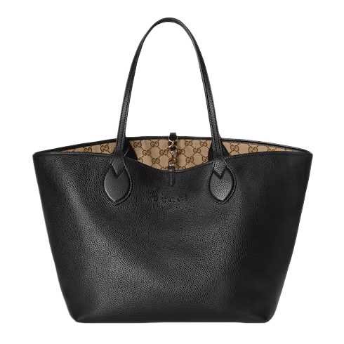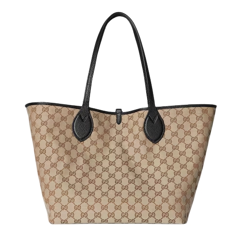 Introducing a reversible style with two distinct looks in one piece, this Gucci Totissima is crafted with grainy leather on one side, and GG canvas on the other. ‘Totissima’ blends the word tote with the Italian superlative, ‘the most’, emphasizing the bag's functionality and enduring style.
