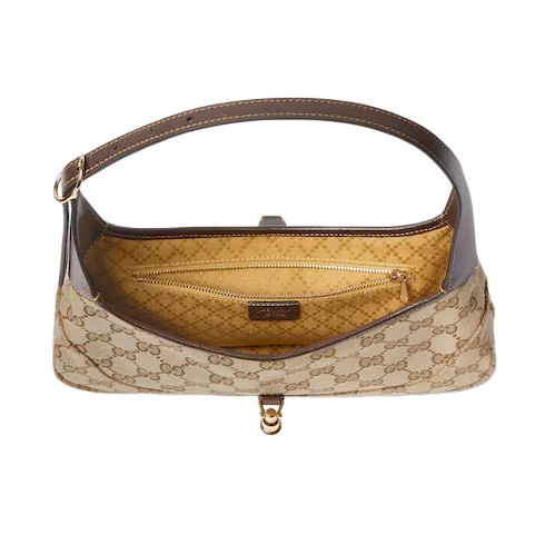 Introducing Spring Summer 2026. This new Jackie Slim is featured in the "La V.I.P." look of La Famiglia. The sleek, relaxed style is crafted from lightweight yet structured GG canvas in a vintage-inspired shade of sand, complete with an easy-to-use piston closure in gold-toned finish.