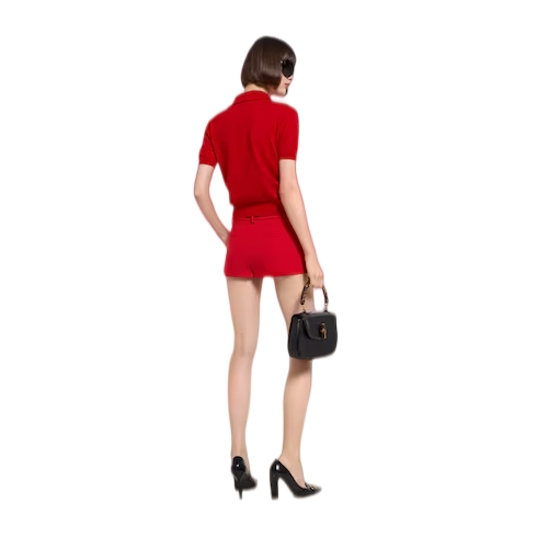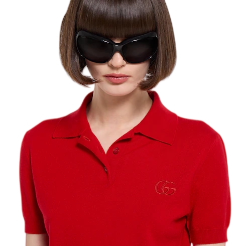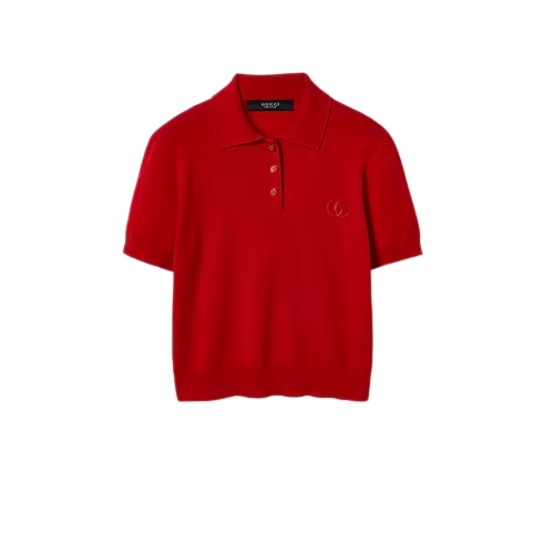 Introducing Spring Summer 2026. This style is inspired by the "Incazzata" look of La Famiglia. The collection reinterprets the House’s codes through singular personalities and distinctive aesthetic attitudes. Crafted from fine carded knit wool, this polo shirt is enriched with a Double G embroidery.