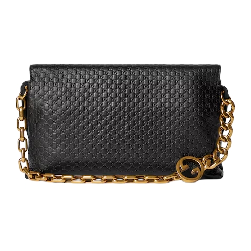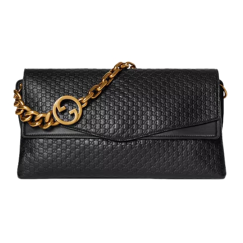 The House's contemporary handbag silhouettes meet emblematic motifs. This sleek style features the Round Interlocking G detail on an antique gold-toned chain, and reveals a 2-gusset construction which offers capacious internal organization.
