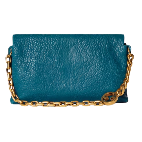 The House's contemporary handbag silhouettes meet emblematic motifs. This sleek style features the Round Interlocking G detail on an antique gold-toned chain, and reveals a 2-gusset construction which offers capacious internal organization.