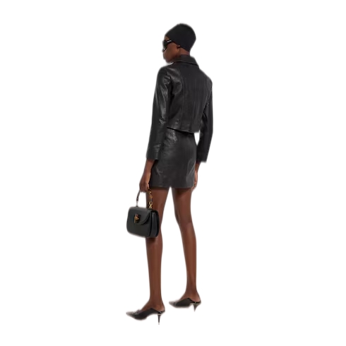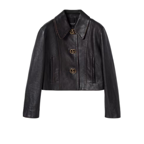 Introducing Spring Summer 2026. This style is inspired by the "Incazzata" look of La Famiglia. The collection reinterprets the House’s codes through singular personalities and distinctive aesthetic attitudes. Crafted from calf leather with aged effect, this jacket is enriched with a handmade clouding treatment.