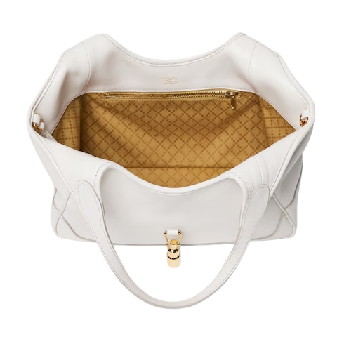 Introducing Spring Summer 2026. The Mercato new tote design is inspired by a spacious shopper and Italian markets. It can be worn with the sides either cinched or open, while featuring an easy-to-use piston closure. Crafted from soft leather, the style reveals a new lining with Diamante motif taken from the archive.