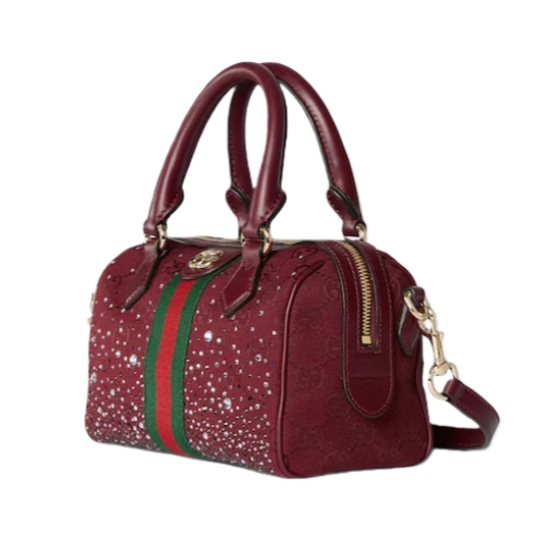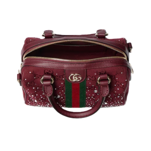 The Ophidia collection evokes the House’s heritage with the signature Web stripe and Double G emblem in light gold-toned finish, introducing gradient-effect crystals for a sparkling touch.