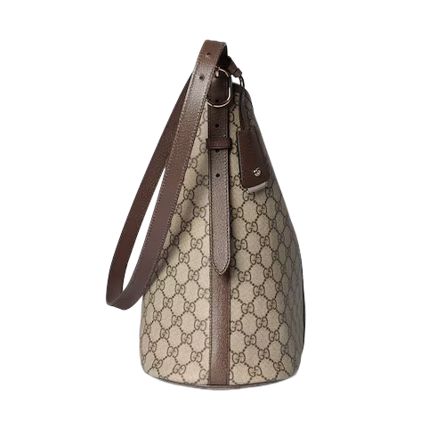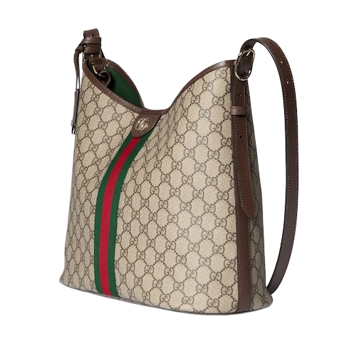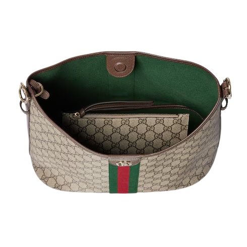 The Ophidia collection evokes the House’s heritage with the signature Web stripe and Double G emblem in light gold-toned finish. The styles are crafted from soft GG Monogram coated fabric, featuring green cotton lining inside.