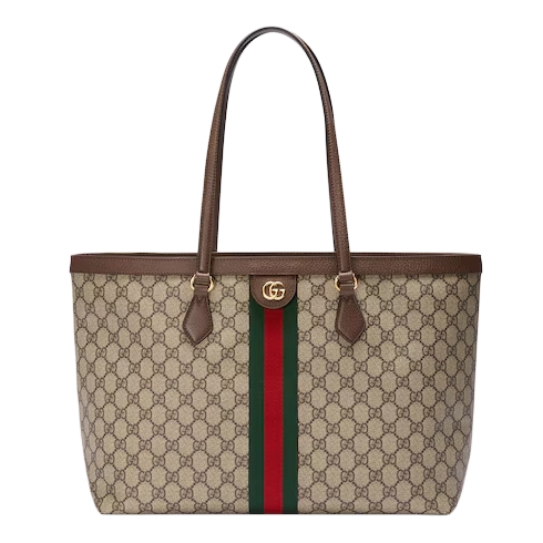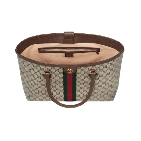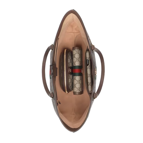 With recognizable design elements in a practical new shape, Ophidia new large sized tote is trimmed with textured leather and topped with Double G hardware. Thanks to its long leather handles, the style can also be carried as a shoulder bag.