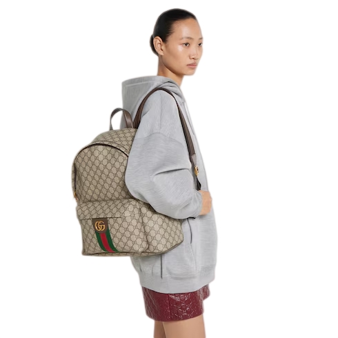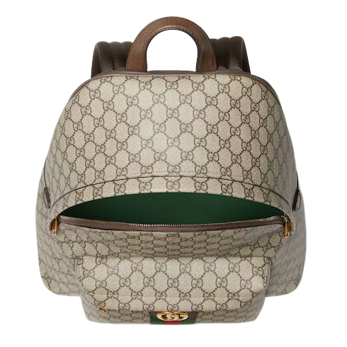The Ophidia collection evokes the House’s heritage with the signature Web stripe and Double G emblem in light gold-toned finish. The styles are crafted from soft GG Monogram coated fabric, featuring green cotton lining inside.