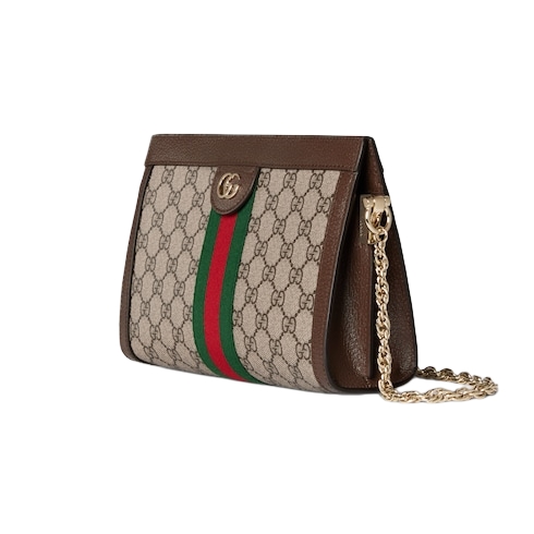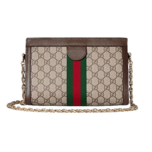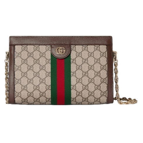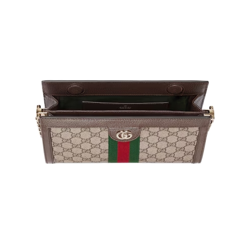 The Ophidia collection evokes the House’s heritage with the signature Web stripe and Double G emblem in light gold-toned finish. The styles are crafted from soft GG Monogram coated fabric, featuring green cotton lining inside.