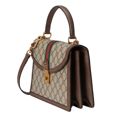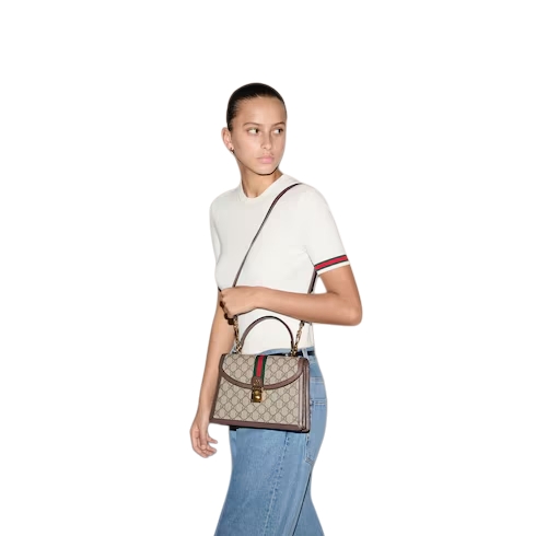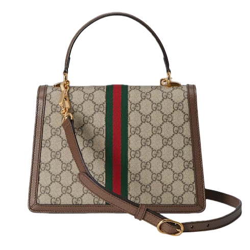 The world of Ophidia continues to evolve with new iterations each season. The top handle bag is presented as part of the Epilogue collection with a detachable shoulder strap. The vintage influenced square shape is accentuated by the House Web stripe and Double G hardware—a contemporary take on a Gucci archival belt buckle from the '70s. Crafted from GG Supreme, the style has a strong logo feel.