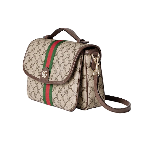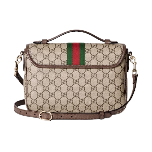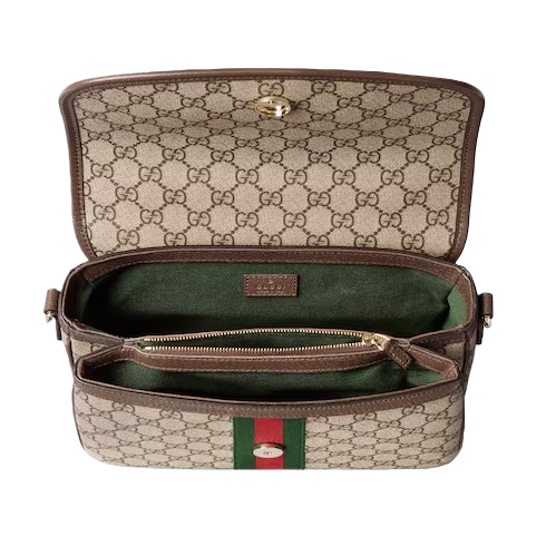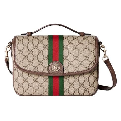 The Ophidia collection evokes the House’s heritage with the signature Web stripe and Double G emblem in light gold-toned finish. The styles are crafted from soft GG Monogram coated fabric, featuring green cotton lining inside.