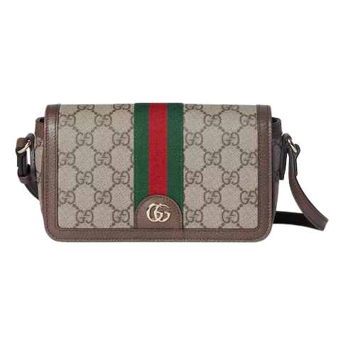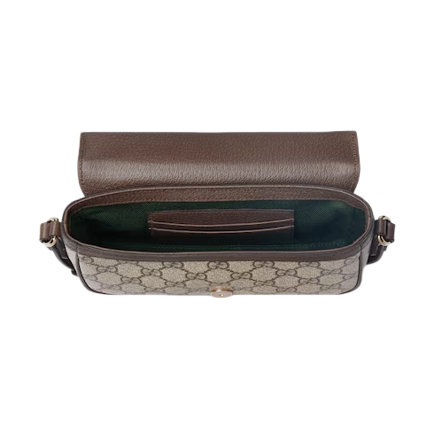 The Ophidia collection evokes the House’s heritage with the signature Web stripe and Double G emblem in light gold-toned finish. The styles are crafted from soft GG Monogram coated fabric, featuring green cotton lining inside. The flap features an emblematic Web trim.